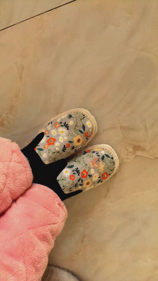 These slip-on shoes are carefully handmade using breathable cotton fabric, featuring delicate hand-embroidered floral patterns. Each pair is unique, reflecting the time, care, and artistry behind every stitch.